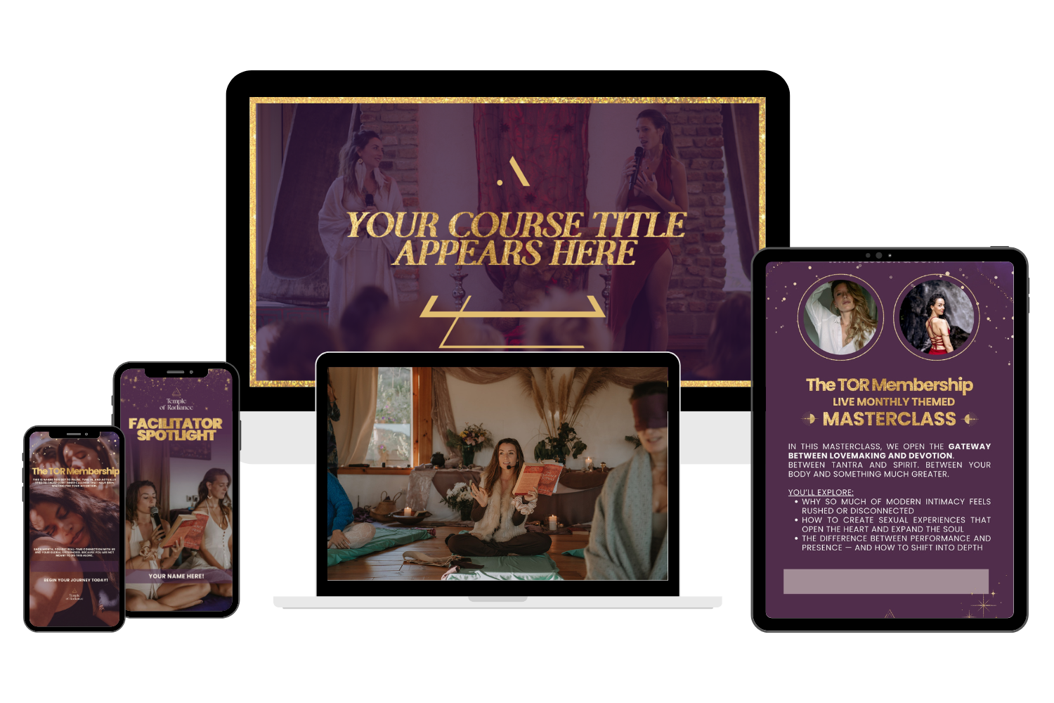 - Professional branding: Every course reflects the Temple of Radiance's sacred, elegant, and modern aesthetic.